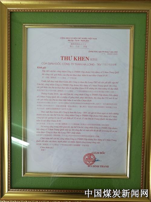 | 中煤矿建三十六工程处越南下龙湾项目部喜获越煤集团下龙公司贺信 | |||