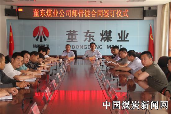 【本网讯】5月16日,陕煤澄合董东公司“师带徒”合同签约仪式在办公楼3楼会议室举行,来自采掘辅助区队的10对师徒分别结对签约,明确师徒关系以及双方的责任、目标、权利、义务。