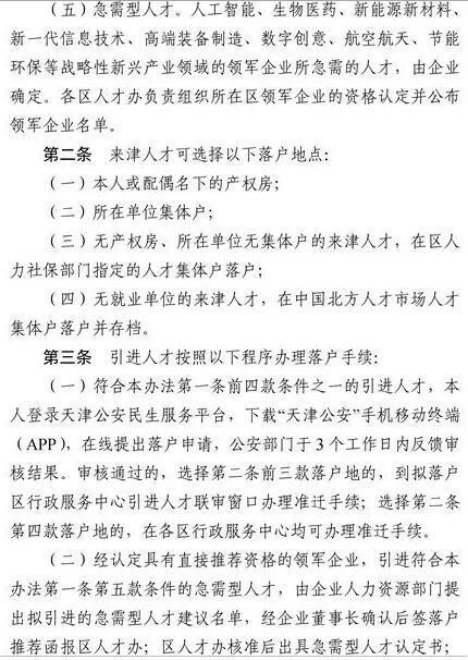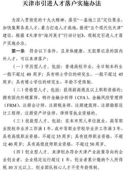 一夕之间,政府类APP“天津公安”火了。 据澎湃报道,在苹果商店App Store的免费App排行榜中,之前没有进入过榜单的“天津公安”甚至在一天之内跃升至前十位。“天津公安”的火爆源于天津市政府出台的人才政策。 5月16日,在第二届世界智能大会上,天津副市长孙文魁在会上介绍“海河英才”行动计划,放宽对学历型人才、资格型人才、技能型人才、创业型人才和急需型人才的落户条件。申请者可登陆“天津公安”民生服务平台在线提出落户申请,公安部门于3个工作日内反馈审核结果。 帮主登录了天津公安官网查询到《天津市人才落户实施办法》,总结一下,以下人士可直接落户: 全日制高校毕业的学历型人才,本科一般不超过40周岁,硕士一般不超过45周岁,博士不受年龄限制,可直接落户; 获得副高级及以上职称,以及拥有国内外精算师、律师等执业资格等资格型人才,可直接落户; 高等职业院校毕业并工作满1年或中等职业学校毕业并工作满3年的、具有高级职业资格、不超过35周岁,具有技师职业资格、不超过40周岁,具有高级技师职业资格、不超过50周岁的技能型人才,可直接落户; 创办符合天津产业政策且企业稳定运行超过1年,个人累计缴纳所得税10万元以上的创业型人才,不受年龄限制,可直接落户。 具体的落户条件如下: 据媒体报道,16日中午12时30分至17日上午9时的统计数据显示,已有30万人次登陆并下载“天津公安”APP办理落户申请,不少媒体用“百万人才争涌津门”来形容这一气势。 众生相:有人激动有人扎心 “天津一天能赶上西安等城市几个月落户量的原因是因为北京的严格户籍政策,这种情况下,天津新落户人群,其中的很大部分其实工作生活在北京的外地户籍。”中原地产首席分析师张大伟向帮主表示。 在天津人才政策出台后,有人激动、有人表示“扎心”。 帮主的一位朋友陈先生在昨天中午听到消息后,赶紧登陆“天津公安”APP,但很快发现登录上去注册后,发现收不到验证码。实际上,今天上午帮主的几位朋友也有类似的经历。 “APP瘫痪了,进不去,人太多了。”和张先生一样登陆失败的李女士决心周一去天津实体办理。“周六日不上班,要是上班的话,我周六就想过去。” 在北京某媒体工作的李蓉一大早被家人的微信吵醒了,远在山西的母亲在家庭群里发了一个关于“落户天津”类的链接,并催促她:“去年有人落户花了30万,你赶紧申报,你阿姨刚办理了。” 和李蓉母亲一样,很多人在北京工作的外地人为新政策激动着。实际上,今天已经有不少人行动起来,直奔天津。“中午的时候发现,京津城际高铁开往天津的车票一张都没有了,连商务座都没有了。”帮主的一位朋友孙女士说。 不过,新政策出来后,也有人直呼“扎心”。 “我是比较倒霉,刚给中介交了费,天津就出了这个政策了。给了中介4.6万,4万的服务费,6000元的三个月社保。”帮主的另一位朋友对天津新出的政策表示“扎心”。 帮主的另外一位朋友同样在政策出台前刚拿到天津户籍迁入证。对于天津出台的政策,他的反应更理性:“当代经济发展迅速,人口大量流动跟户籍制度的滞后存在矛盾,户籍制度的优势逐渐被人口红利的优势制约,放开落户政策是必然的趋势。” 扎心的还有一些办理户口的中介。一位中介向帮主的朋友孙女士表示,新政策自己损失了30来万。“我前一段时间是先办理后收费,现在这几个办理户口的人联系不到了,到现在我手里还有好几个客户准迁证”。 也有办理天津户口的中介对此并不惊讶。“赔30万在我们行业里算是赔的比较少的了,我们都这样。”另一位中介向帮主表示。 有中介向帮主介绍,也有中介这两天调整了业务,帮助落户的外地人跑人才市场落户,挣跑腿费。 而在此前,不少未获得北京户籍的在京工作者选择“购买”的方式落户天津——通过中介,给予其一定的费用办理天津户口。 帮主的一位朋友刘女士在今年年初通过中介落户到天津。“去年7月还是8月份咨询,4个月给办好了,花了4万块钱。找了家天津的企业接收我的户口,假装在天津工作。”刘女士也坦陈,一直没有拿到北京户口,办天津户口就是为了孩子上学,“不打算在天津买房,户口落在哪里我其实都不记得了。” 实际上,多数人直言,为了孩子而选择落户天津。“其实这段时间在咨询中介办理天津户口,要4万块,这下费用可以省了。”帮主的朋友张先生是河南人,在北京某金融机构工作,去年冬天孩子刚出生。“落户天津就是为了孩子,天津距离北京近,教育质量不错,升学率也高,比我们河南考学容易多了。” 落户政策会推高天津的房价吗? 今年,多个城市出台人才政策,加入人才争夺战。如何看待天津以及多个城市的人才政策,政策是否将推高房价?帮主就此采访了易居智库研究中心总监严跃进和中原地产首席分析师张大伟。 严跃进:“政策可能会带来房价的上涨” 易居智库研究中心总监严跃进认为,此次发布的政策是天津城市发展焦虑的一个体现,尤其是雄安新区建设后,未来天津的优势会削弱。所以相比过去的政策,天津此次也积极借鉴了同类的二线城市的改革,是不甘在此类领域落后的体现。 天津出台的这一人才政策将对市场带来哪些影响? 严跃进向帮主表示,对于天津来说,类似人才导入后,势必带来人口规模的增加,同时也可能会带来购房需求的上升。“从实际情况看,天