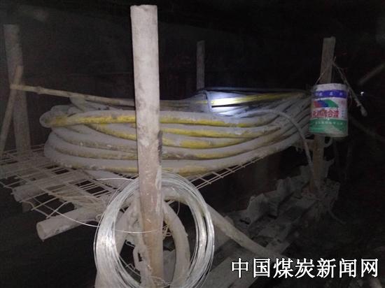【本网讯】随着综掘机的广泛应用,跟综掘机的电缆悬挂、储存成为一个难题,制约生产和质量标准化进程。山东能源临矿集团田煤公司武所屯煤矿根据这一课题研究在综掘机缓冲跑道后端制作电缆架存放100-200米电缆,随着掘进前移随时取放电缆吊挂在电缆钩上,形成了可移动式电缆架,实现了方便快捷,达到一次成巷。