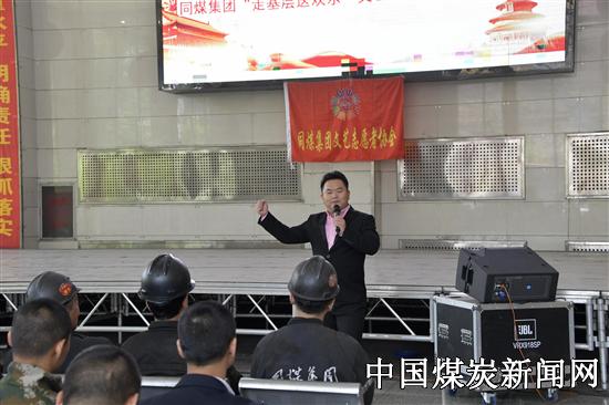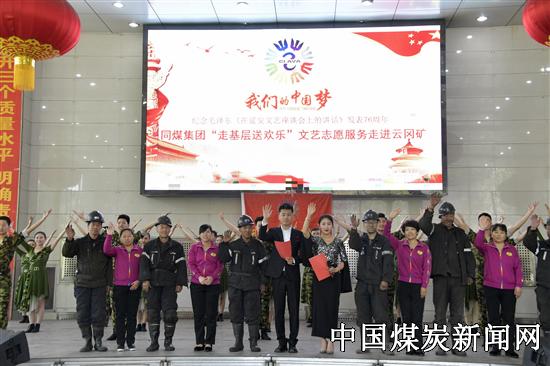 【本网讯】5月22日,来自同煤集团文艺志愿者协会的“红色文艺轻骑兵”们,深入到集团公司云冈矿开展了“我们的中国梦”走基层送欢乐文艺志愿服务活动,为矿工们送去了精彩的文艺节目和美好的祝福,受到了现场观看节目员工们的欢迎和好评。图为文艺志愿者为员工送上精彩的文艺节目。