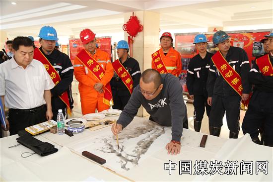 【本网讯】5月23日,中国煤矿文联文艺志愿服务走进同煤集团塔山煤矿,来自中国煤矿文联书法协会的书法家一行在塔山矿井口大厅现场挥毫泼墨,创作书法作品280余幅, 并现场赠送给该矿劳动模范手中,劳动模范们脸上露出了幸福笑容。