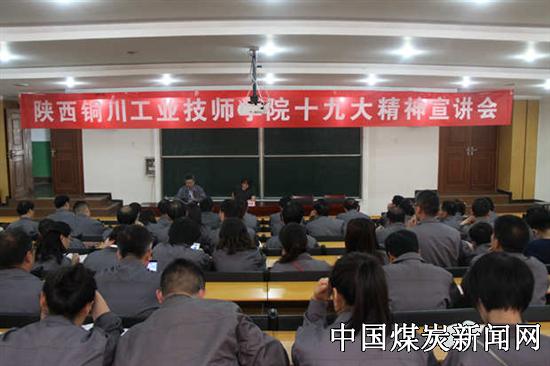 5月23日下午,原铜川市红旗社区党总支书记、十九大代表李秋莲同志应邀走进陕西铜川工业技师学院,为全体教职工宣讲十九大精神。院长张晓彻同志主持宣讲会。