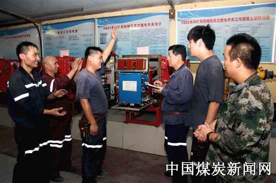 赵固一矿在科技人员培养上打破以往吃大锅饭、一锅烩的实际,专门由各个专业“顶尖”人员分系统、分专业进行专题授课考核,真正让专业人员培养专业人才。图为5月24日,该矿技能大师李满意(右三)对职工进行机电专业授课考核。