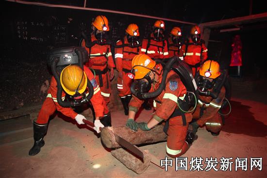 本次演练以适应井下高温潮湿的恶劣环境,提升指战员体能技能的综合性训练。训练中,指战员按照规定程序进行了闻警出动、下井准备工作,佩用氧气呼吸器进入演习巷道,模拟井下灾区环境,在50℃的高温中每人完成锯断直径30cm以上圆木1段,并拉检力器100次。通过演练,充分检验了指战员的综合体能、技术操作水平和适应能力,达到了全优标准。