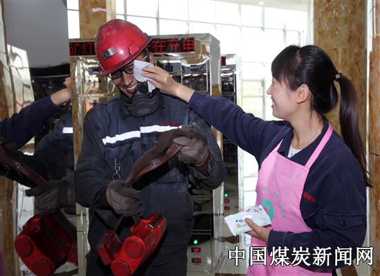 【本网讯】6月15日早上,同煤集团北辛窑煤业公司工会开展了以“粽情粽意、家粽飘香、福浓福满、幸福平安”为主题的端午节井口慰问暨“安全公约平安”活动。为夜班出井职工送上了送上了香甜的“粽子”、用以避邪祈祷的“公鸡”,并为他们带上了象征平安的“百索”。许多夫妻档还签定了《家庭安全公约书》,妻子为刚出井的丈夫擦汗、喂粽子、带“百索”,用甜言蜜语和浓浓的平安祝福迎接丈夫的平安出井。 图1为工会组织井口慰问活动现场。图2为妻子为刚出井丈夫擦汗。