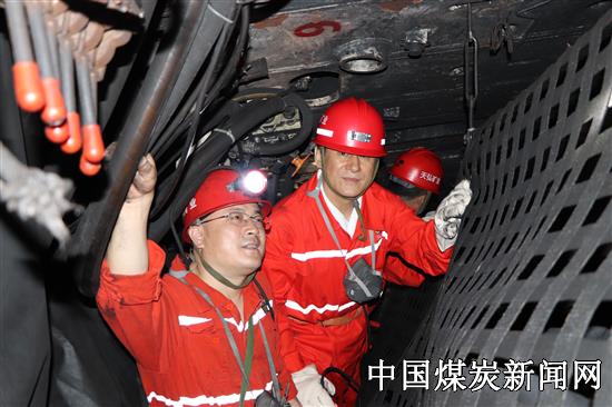 杨富一行首先听取了盐井一矿安全生产工作情况汇报、矿井监测监控系统升级改造工作情况汇报。查看了该矿监控中心,了解信息化平台、监测监控等系统运行情况及企业在安全生产方面的管理措施。随后,深入井下10402采煤工作面了解现场安全管理、瓦斯治理、通风系统、人员定位、监测监控系统等情况,叮嘱工人要严格按操作规程,遵守安全规章制度,防范安全隐患,确保安全生产。 杨富指出,安全是煤矿的头等大事,矿井自动化、信息化是促进安全管理、保障安全生产的重要手段。监测监控系统升级改造,是要将安全监控系统、安全管理系统、人员定位系统、应急救援系统等与监测监控系统高效融合与集成。要利用新工艺、新装备、新技术,全面提升煤矿管理水平,用现代化手段做到减人提效,实现矿井安全生产。图为杨富副局长(右)在采煤工作面调研。
