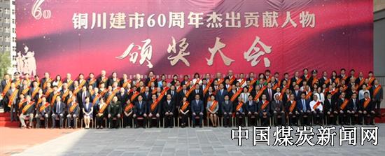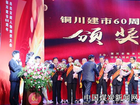 6月13日,由铜川市文明委、市政协主办的铜川建市60周年杰出贡献人物颁奖大会在耀州区文化艺术中心召开,回顾铜川建市60周年发展历程,展示铜川60周年发展成就,颁发杰出贡献人物奖。市委书记杨长亚,市人大常委会主任马秉寅,市长李智远,市委副书记魏四新以及其他市级领导出席颁奖大会并为杰出贡献人物颁奖。陕西美鑫公司党委书记、董事长拓刘毅当选铜川建市60周年杰出贡献人物,荣获改革发展杰出贡献人物奖。铜川市委书记杨长亚颁奖。
