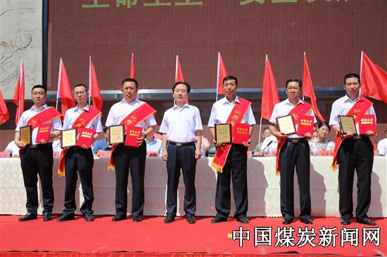 矿长渠贵君作动员讲话。他要求全矿上下围绕“生命至上,安全发展”的主题,深入贯彻落实习近平总书记关于安全生产工作的重要思想,以及党中央、国务院和省委、省政府关于安全生产工作的决策部署,警钟长鸣,始终保持安全生产高压态势,建立生产安全、经营安全、政治安全、形象安全、环保安全、治安安全“六安”目标长效机制,大力宣传普及安全生产法律法规知识,不断增强全员安全意识和自救互救能力,做好“六个严防”、“六项常态化”相关工作,突出水、火、瓦斯、煤尘、顶板、辅助运输等重点领域的安全隐患排查与治理,促进全矿安全工作再上新台阶。 集团公司纪委书记吴跃平和矿长渠贵君为六名安全优秀班组长、六名安全优秀区队长颁奖。吴跃平代表集团公司为云冈矿颁发2017年度“安康杯”竞赛优秀组织单位奖。