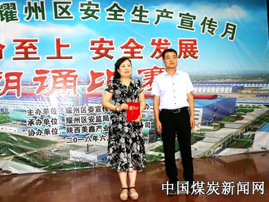 【本网讯】今年,是全国第十七个安全生产月,为了宣传安全政策法规,传播安全知识,弘扬安全文化,启发和教育职工珍爱生命、遵章守纪,提高安全意识和安全素质,进一步营造“我要安全,我会安全,我能安全”的良好氛围,提高广大职工搞好安全生产的主动性和自觉性。6月20日,耀州区委宣传部、耀州区安委办、耀州区安监局、耀州区文联、陕西美鑫产业投资有限公司联合举办以“生命至上,安全发展”为主题的安全朗诵比赛活动。