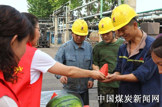 “早晨夜班上井,中午中班下井、早班上井,保证职工们都能享受片刻的清凉、听到亲情的嘱托、学到岗位安全知识。”矿工会协管活动组织工作人员徐娜介绍说,“为确保服务时间和服务质量,我们根据上下井的班次,组织19个基层车间工会女工协管开展此项活动,确保全时段全方位服务矿工师傅。” “快看,你们一家三口的照片,体恤衫设计的真不错!”工友们对刚上井的小张惊喜地说。在井口,前几天工会开展安全家庭日活动照片集锦和安全寄语牌板摆放在候罐室,让职工们看到妻儿的笑脸感觉身上的安全责任更重了。“矿工师傅要安全、操作规程记心间……”,文体骨干和老年大学音乐舞蹈班学员自编自演的歌曲、朗诵、秧歌、葫芦丝合奏等小节目依次上演,职工们吃着清凉的西瓜,欣赏着精彩的节目,赶走夏日的困乏,增添工作的干劲。“这位师傅回答正确,请发给一份纪念品”,“安全生产月”暨“学知查正比”知识问答进行的如火如荼,安全方针、岗位标准、行为规范知识吸引职工踊跃参与。 在区队,安全倡议和安全诗歌朗诵响彻全场。那边,协管员们为参加班前班后会的干部职工端上切好的西瓜。这边,安全抢答掌声不断。“天气炎热,多吃瓜果桃李,多吃清淡食物,保持愉悦心情,经常测量血压,保证充沛精力……”一句句温情嘱托,滋润职工心田。 在车间现场,为身穿工装的职工送去清凉、拭去汗水。爬上行车、走进岗点,关心的询问一声,真诚的嘱咐一句,关切的提醒一下,为坚守岗位、一丝不苟努力工作的职工加油鼓劲…… “生命至上、安全发展”。保障生命安全健康是煤矿职工最大的福利。女工协管用真心、真情唤起职工对安全的关注,对生命的关爱,撑起矿区安全生产“半边天”。