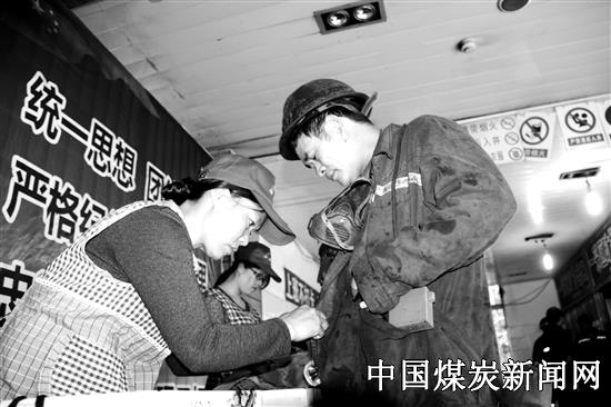 【本网讯】 在“安全生产月”期间,贵州松河公司组织安全协管员到两个采区井口,为矿工兄弟们热情地缝衣服、钉扣子,从一针一线里面体现出对矿工兄弟的爱。
