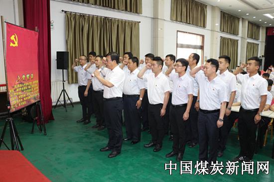 ![]() 上午9时整,该矿庆祝建党97周年暨创先争优总结表彰大会,在雄壮的《国歌》声中拉开帷幕。15名纳新党员面对鲜红的党旗,举起右拳用铿锵有力的声音庄重宣誓加入党组织。