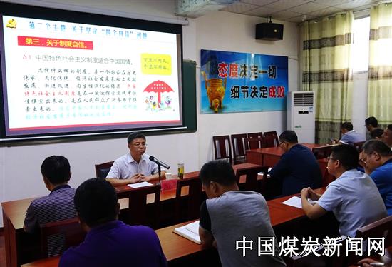 【本网讯】为进一步学习贯彻习近平新时代中国特色社会主义思想,认真开展好“不忘初心、牢记使命”主题教育。6月25日,贵州盘江精煤股份有限公司月亮田矿党委书记田大坤以《树立正确“三观”、坚定“四个自信”》为主题讲授了一堂迎“七一”专题党课,矿党委委员及各基层党员干部和积极分子代表共70余人认真聆听了党课。