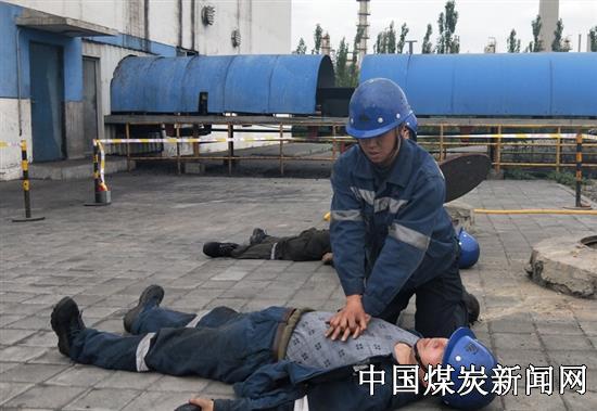 ![]() 【本网讯】为响应第17个安全生产月“生命至上、安全发展”的主题,6月1日,神华宁煤集团煤制油化工公管公司配煤一中心运行四班在T8转运站组织开展班组级应急演练。此次演练的主要内容是T8转运站有限空间作业人员中毒昏迷,班长接到中控汇报电话后3分钟之内,救护组、抢险组等15人迅速赶往事故现场,进行人员观察、救护等,救护人员思维清晰、动作标准,整个活动紧张有序,增强岗位人员面对突发情况的应急处置能力和急救能力。图为救护组人员正在进行心肺复苏急救。