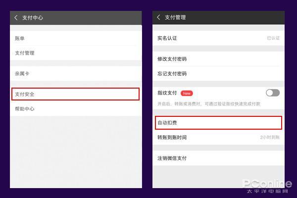2. 点击进入「支付管理」,点击「自动扣费」查看签约项目;