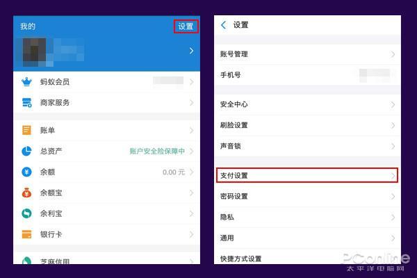 1. 在支付宝「我的」点击右上角「设置」,点击进入「支付设置」;