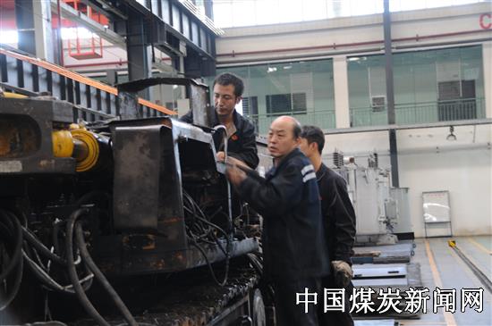 贵州盘江矿机公司矿修车间职工对掘进机进行检修