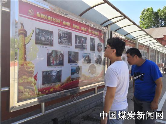 峰峰集团后勤实业分公司制作了7块以“新时代,新使命,新贡献”为主题的党员风采牌板展,牌板展出了7个党支部的党员干部干事创业的风采照片,充分彰显各支部战斗堡垒作用和广大党员的先锋模范作用。图为该公司职工正在参观党员风采牌板展。