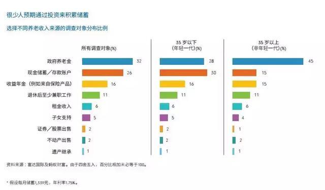 养老遥远吗? 给你一分钟算一下,从现在到退休还有多少年?如果想过上惬意无忧的晚年生活,需要筹备多少钱?这些钱从哪里来?需要从什么时候开始准备? 现实是,当你算数的时候,你可能已经来不及凑够养老的钱了。 几年前,北京一位大学教授说出了一个惊人的数字:一线城市,预备1000万元养老也未必够。这让月收入只有几千元的工薪阶层吓了一身冷汗。 随着中国人口老龄化的加速,越来越多人关心,年轻时候筹备多少钱才能过上惬意无忧的休后生活。 富达国际联合蚂蚁财富,在中国做了一个样本容量近3万人的调查,得出了一个结论:年轻一代(35岁以下)希望过上舒适的养老生活,在不考虑投资的基础上,至少需要163万元储蓄资金。 图片来源:调查报告截图 其中,22%的人认为,拥有100-200万元就可以让自己过上舒适的休后生活;18%的人认为100万元以下也是可以接受的;6%的人觉得700万元以上才能过得相对舒适。 具体到不同的城市,生活成本不同,养老成本不同,又会千差万别。 存钱靠不靠谱? 既然养老需要钱,那年轻的时候存钱是个好主意吗? 调查认为,这有很大难度。因为,即使年轻一代每个人每月拿出正常收入的五分之一(大约1339元)储蓄,也需要超过60年才能达到163万元的目标。 如果人们60岁退休,则意味着从一出生就要开始存养老钱。当然,还有一种办法,退休后身体康健还可以继续兼职工作,赚钱养老。 存钱、继续工作,都不错。但养老更大的问题是,年轻一代还没有树立起养老意识。调查显示,44%的人认为他们在退休前不会达到足够的储蓄,超过一半调查对象尚未开始为退休做任何准备。 图片来源:调查报告截图 为什么不懂得“提前量”?富达国际中国区董事总经理李少杰接受中新社国是直通车采访表示,调查结果显示,缺钱是储蓄最大的障碍。他进一步指出,年轻一代承受着作为“夹心一代”的压力,他们上有老、下有小,需要同时承担老人和孩子开销。与上一代人相比,年轻一代储蓄更少,负债更多。 缺钱怎么办? 缺钱自然要挣,但更重要的是要做好规划。 调查结果显示,年轻一代虽然对未来有着美好的规划,但并不能意识到问题的严重性。比如,中国社会老龄化正在加速:从现在到2050年,劳动人口与退休人员的比例将从6.9:1降低至2.1:1。 再比如,预计到2020年,全国60岁以上老年人口将增加到2.55亿人左右。中国社会科学院财经战略研究院的一份调查显示,到2020年中国养老金缺口会扩大。 为了满足养老需求,中国也在积极想办法。“以房养老”就是从国外学习借鉴而来的,目前在中国已经试点4年。虽然以房养老保险中间还存在各种各样的风险,但也给社会提供了不同的养老选择。 在李少杰看来,真正实现老有所养、老有所依,“要求年轻一代从现在就开始了解制定财务目标、控制预算以及提前进行长期储蓄。” 养儿防老成过去式 在传统观念中,人们普遍认为“养儿防老”。但调查发现,只有5%的人认为他们在晚年会得到子女的支持。这在一定程度上反映出,人们的养老观念已经发生了变化。 图片来源:调查报告截图 在所有调查对象中,32%的人认为养老收入来自于政府养老金,26%的人认为现金储蓄是养老收入的重要来源。此外,收益年金、退休后兼职工作、租金收入是部分人养老收入的来源。 从过去的实践看,中国的养老保险制度可以总结为“三大支柱”:其一是基本养老保险;其二是企业年金和职业年金;其三是个人储蓄型养老保险和商业养老保险。然而这三大支柱在发展过程中,也面临一些新问题。 国是直通车 侯雨彤 制图 三大支柱的新问题 作为第一、第二支柱的养老保障仍是基于正规就业的框架设计,对缺乏雇主的灵活就业很难规范管理。近年来随着灵活就业、弹性就业等新型就业形式不断出现,对原有的制度提出了新要求。 作为第一、第二支柱补充的第三支柱,近来发展加速。5月1日起,个人税收递延型商业养老保险在上海市、福建省(含厦门市)和苏州工业园区实施试点。还有,第一批14支养老目标基金也已经获批。 第三支柱在发展过程中,更偏向于介绍产品的稳健,产品也增加了抵御风险的设计。例如,养老目标基金,以投资者退休日期为目标,根据不同生命阶段风险承受能力调整投资配置。但只要是投资品,就有风险存在。目前国内也有不少个人养老产品,但鱼龙混杂难辨真假,有些甚至直接是诈骗。 李少杰建议,当前非常重要的一点是要加强国内投资者教育,帮助他们了解养老投资的一些基本问题。对于投资风险,年轻人承受风险的能力大,会更倾向于权益类资产,相反老年人抵御风险的能力弱,建议选择相对保守的固定收益类资产。