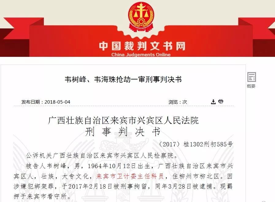 导语:在山洞里,这伙人抢走了周方随身携带的1900元现金,还将其吊起来用鞭子抽打,逼迫对方说出到底收受过哪些人的贿赂,导致周方右膝盖内侧副韧带损伤,全身多处软组织损伤。为了人身安全,周方只好虚构自己受贿过一辆越野车的事实,并写下字据交给韦某峰等人。 8月3日,广西来宾市纪委监察委对外公布,近日,来宾市监察委员会对来宾市人民医院原院长周方作出开除公职处分决定,其涉嫌犯罪问题移送检察机关审查起诉。8月3日,检察机关对周方采取逮捕强制措施。 经查,周方在担任来宾市人民医院副院长、院长期间,违反中央八项规定精神和廉洁纪律,收受他人礼品;违反生活纪律,与多名女性发生并长期保持不正当性关系;违反国家法律法规规定,利用职务上的便利为他人谋取利益并收受财物,且在党的十八大后仍不收敛、不收手,数额特别巨大,涉嫌受贿罪;家庭财产和支出明显超过其合法收入,差额特别巨大,涉嫌巨额财产来源不明罪。 今年4月4日,来宾市纪委监察委对外宣布对三名因涉嫌严重违纪违法的市管干部进行组织审查和监察调查,这是来宾市监察委成立后首次宣布对市管干部的调查。其中,来宾市人民医院原院长(正处级)周方在名单之列。 周方现年50多岁,曾在来宾市人民医院担任院长职务多年,直到2017年2月遭绑匪绑架后才调离本岗位。 周方曾因“被绑架事件”而引起关注 周方2017年初曾因“被绑架事件”而引起关注。当时绑匪将其绑进山洞,称其受贿而勒索10万元。 法院查明,韦某峰案发前是来宾市卫计委主任科员。由于工作关系,他认识了来宾市某医院原院长周方。 韦认为,周方担任院长多年,应该收受过他人的贿赂,家里会比较有钱,如果将其绑架,勒索一笔钱财,对方可能不敢报案。于是,他召集了同伙陆某和韦某珠,多次到周方家附近踩点,伺机作案。 2017年2月15日晚,韦某峰跟两名同伙携带手铐、绳子、铁链等工具,开着租来的一辆小轿车到周方家门口蹲守。 次日凌晨,周方回到家门口时,被韦某峰和同伙从身后突然袭击,用东西套住头,捂住嘴巴强行塞进小轿车里。随后,3人将车开到兴宾区某乡镇的一处山洞内。 在山洞里,这伙人抢走了周方随身携带的1900元现金,还将其吊起来用鞭子抽打,逼迫对方说出到底收受过哪些人的贿赂,导致周方右膝盖内侧副韧带损伤,全身多处软组织损伤。 为了自己的人身安全,周方只好虚构自己受贿过一辆越野车的事实,并写下字据交给韦某峰等人。得到周方写下的“受贿事实”后,韦某峰等人如获至宝,认为掌握了周方的把柄,提出要10万元才将周方放走。周方为了人身安全,迫不得已打电话向同事借10万元,并让同事拿钱到指定地点交给韦某珠。 2月17日上午7时许,3人将周方带回市区。在韦某珠拿到钱后,韦某峰和陆某开车将周方带到市郊释放。当日,3人将抢来的10万元瓜分,韦某峰分得4万元,陆某和韦某珠分得3万元。 实施绑架三人一审被重判 2017年12月26日,兴宾区法院开庭审理了此案。法院经审理后认为3名被告人以非法占有为目的,以暴力和胁迫的手段限制他人人身自由,劫取他人财物,数额巨大,其行为已构成抢劫罪。 2017年12月28日,兴宾区法院对这起备受社会关注的案件作出一审判决,以抢劫罪判处韦某峰和两名同伙有期徒刑11年至12年不等,同时分别并处罚金4万元。 没曾想,事发一年零两个月后,周方真的因受贿而落马。不知牢内的韦某峰心中又作何想。