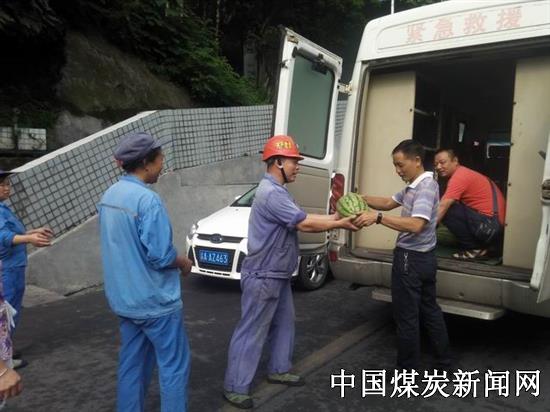 ![]() 此次送清凉活动利用三天时间,全覆盖为井下员工及地面风井绞车房、35KV降压站、炸药库、抽压风机房等边远山区坚守岗位的员工送上清甜可口的西瓜。
