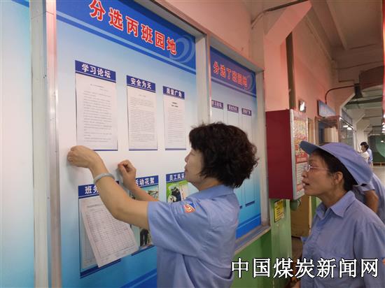 【本网讯】今年以来,中国平煤神马集团帘子布公司原丝二厂紧紧遵循公司“创新、提效、规范、育人”工作主基调,牢牢把握“班组”这个最小阵地,坚持基层工作进班组。该厂立足于打造学习型班组,不断强化班组阵地,提升班组整体素质。 图为9月7日,该厂管理人员在集中更换班组园地的最新内容。