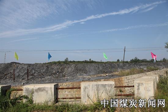 8月17日上午,红土矸山周围彩旗飘扬,橘红色的底幕上印有黄色“加大矸山治理力度,还矿区一片蓝天”、“绿水青山就是金山银山”的横幅格外醒目,8台大型工程车辆整装待发。