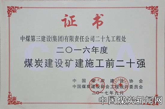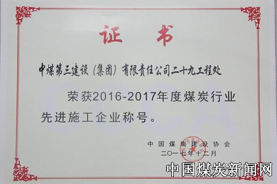 | 中煤三建二十九处荣获全国煤炭建设行业多项殊荣 | |||