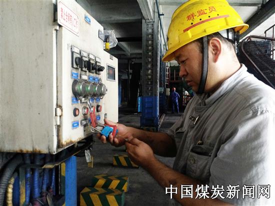 太西洗煤厂认真贯彻落实安全生产责任制,对现场设备检修过程全面升级管理,严格执行“三把锁”制度,即在设备检修时,控制柜需要作业人员、停送电人员、生产车间岗位司机同时上锁,方可进行检修,有效防止了设备隐患的出现,确保安全生产。图为9月13日,机修车间检修人员在上锁。