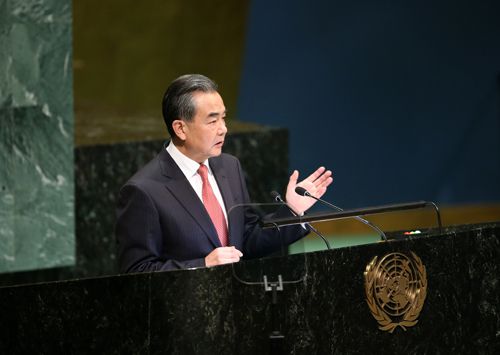 当地时间2018年9月28日,国务委员兼外长王毅在纽约联合国总部出席第73届联合国大会一般性辩论,并发表题为《坚持多边主义共谋和平发展》的演讲。