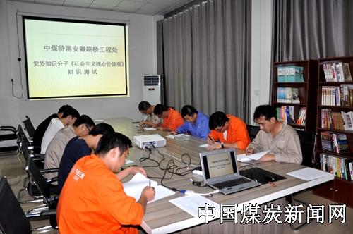 【本网讯】根据集团、特凿公司党委关于加强党外知识分子教育管理的工作要求,9月6日上午,中煤特凿安徽路桥工程处党委在新化项目部组织党外知识分子开展了《社会主义核心价值观》知识测试活动,项目部10名党外知识分子参加了测试。