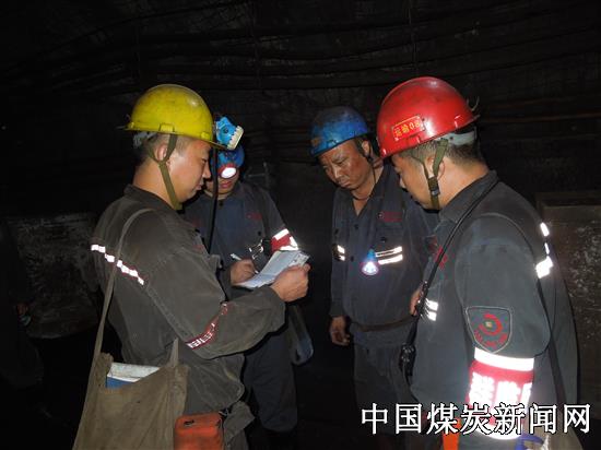 梧桐庄矿工会开展“安全班组督促”活动,图为岗前检查持证上岗。