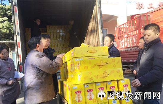 【本网讯】在新春来临之际,为了让广大干部员工度过一个祥和、愉快的猪年新春佳节,河南能源化工集团焦煤公司中马村矿工会为2200余名干部职工每人分发一份大米、面粉、食用油等“春节年货套餐”,领到福利的员工切身感受到了企业浓浓的关爱与温暖,纷纷表示在新的一年来,要撸起袖子,立足岗位,努力工作,为企业出大力,流大汗,多奉献!图为1月22日该矿一线区队员工拉上小车领“年货”的画面。