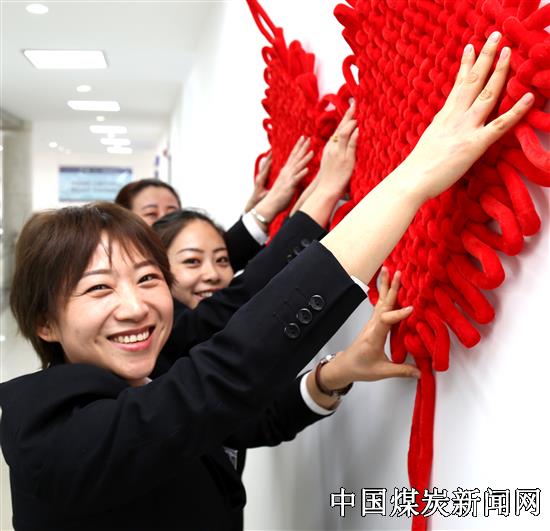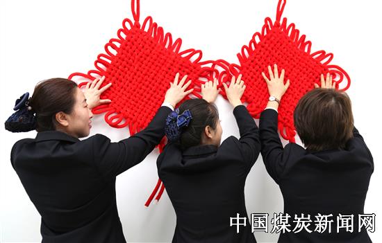 【本网讯】春节即将来临,同煤集团塔山煤矿以多种方式迎接中国农历春节的到来,矿区到处张灯结彩一片红红火火景象,图为女职工正在吊挂红红火火的中国结共迎新春佳节的到来。