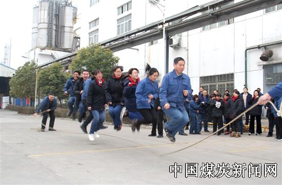 本网讯 为丰富职工业余文化生活、营造祥和节日气氛,1月25日上午,中国平煤神马集团工程塑料公司举办了2019年迎新春职工活动。此次活动包括拔河、接力跳绳、跳绳等项目,吸引了广大员工踊跃参与。公司党委副书记、纪委书记、工会主席王若群在现场助阵加油。