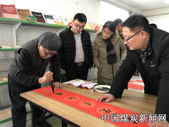 【本网讯】2019年1月28日,正值农历小年,山东能源肥矿集团曹庄煤矿开展了“笔墨飘香、迎春送福”活动,特邀矿区书法家到矿职工书屋现场挥毫泼墨,为矿山带来新春祝福!
