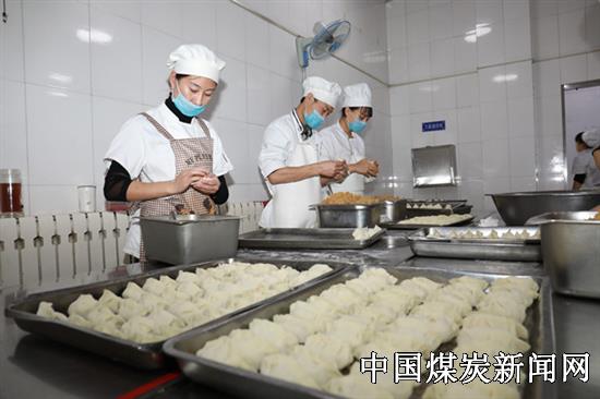 【本网讯】为了让职工感受到新年的喜气以及企业的关爱,春节前夕,神宝能源后勤服务中心配餐部开展了“新春送关爱饺香系真情”活动,提前包制了牛肉萝卜、猪肉芹菜、韭菜鸡蛋虾仁等六种馅的冻饺子八千多个,为新年期间坚守岗位的干部职工准备好班中餐节日食品。图为该公司后勤服中心配餐部职工正在包制冻饺子。