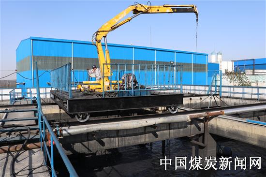 “以往水调节池抽放煤泥有死角、不均匀,现在好了,用咱们的设备干,排放合格、水质标准也高了。”机修厂员工刘胜利作业时兴奋的告诉了笔者。 该装置投入成本低,一次性组装,永久使用。系将报废吊车的液压机械臂拆解后,与起重机和液压站一起固定在自制的6*4米的滑轮车上。通过1人遥控操作,既可在调节池上方2道、35米长的轨道内来回运行;又利用起吊臂伸缩性将污泥抓挖到设定位置,实现360度旋转,准确、平稳的实现任意位置抽放。扭转了水质标准波动局面,消除了以往远距离作业的安全隐患。