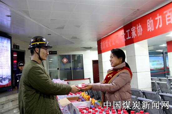 【本网讯】12月12日早上六点多,一场突如其来的大雪为地处桥山腹地的陕西蒲白建新煤化又添了些许寒意。在该公司井口候车大厅里,女工家协们却早已来到这里,正忙碌着为即将入井的职工送上矿泉水、火腿肠、苹果等慰问品。一声声亲切的问候、一句句热心的叮咛,让在场的矿工们个个笑逐颜开。