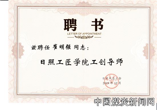 ![]() 会议期间,崔明强还被日照工匠学院聘任为工创导师。该学院由日照市总工会与日照市技师学院合作筹建,旨在培育符合区域经济发展需求的高端技能型人才,打造全国工匠培育的示范基地。