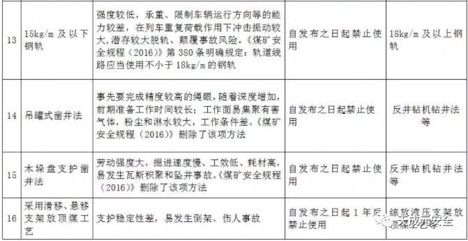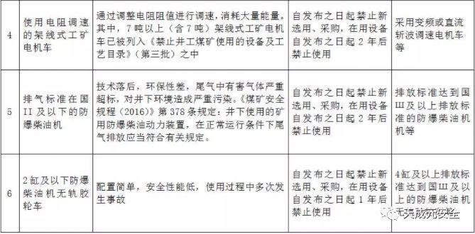 附件:禁止井工煤矿使用的设备及工艺目录(第四批)