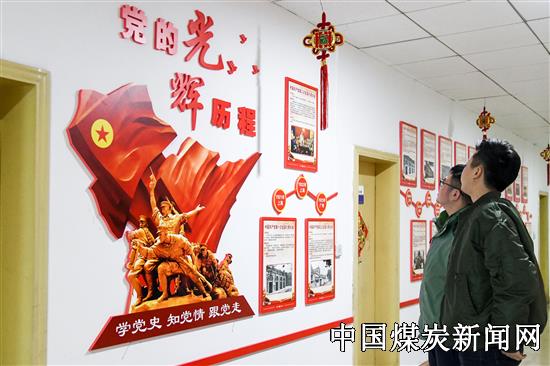 “1921年中国共产党在上海召开了第一次全国代表大会,确定了中国共产党的名称和纲领,”“2017年中国共产党在北京召开了第十九次全国代表大会。”12月3日,安顺煤矿两位新进大学生职工正在刚新建好的党建文化长廊边观看、边讨论。 据了解,今年以来,该矿以基层党组织规范化建设为突破口,针对以往基层党支部无活动场所或活动场所不适应新时期党建工作需要的实际情况,克服困难,在办公场所不足的情况下,充分利用办公楼走廊和区队会议室,统一建设党员活动阵地,将各种党史和标语制作上墙,便于党员随时学习。 如今,该矿办公走廊空白墙区域变成了党史教育文化长廊,将党建宣传教育工作融入到职工群众的日常生活中,党建文化墙不仅装饰了工作环境,更是为党员营造“处处是课堂,时时受教育”的浓厚氛围,通过创特色、建亮点、挖潜力,因地制宜抓好自身党建阵地建设,拓展了党组织活动和党员教育活动的广度和深度,有力巩固提升了基层党组织的战斗堡垒作用,提升了该矿党委党建文化内涵,积极发挥党建引领作用。
