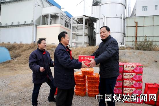 【本网讯】1月29日,为能够让一线职工感受到节日的喜庆氛围,感受到企业的安全嘱托,陕西美鑫公司提前准备了苹果、瓜子、糖、橘子等慰问品,送到一线员工手中。嘱咐他们要注意安全生产,杜绝“三违”行为,与家人度过一个幸福安康的新春佳节。