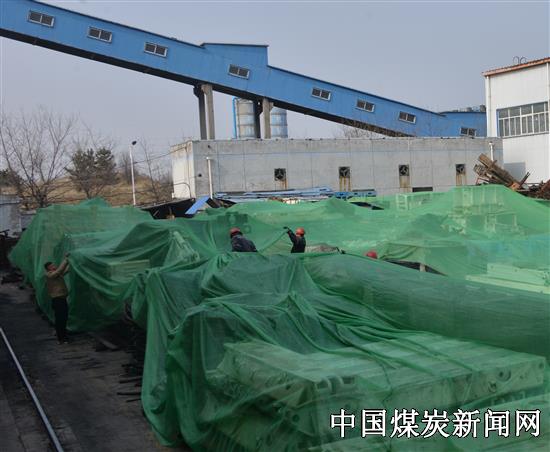 进入3月份,河南能源孟津煤矿掀起环境保护浪潮,对矿区卫生及绿化进行大整改;对露天重置码放并用抑尘网覆盖;对运煤道路、储煤场、矸石山、木料场等重点要害部位环保工作进行自查整改。图为该矿综采车间职工在对露天设备进行抑尘网覆盖。