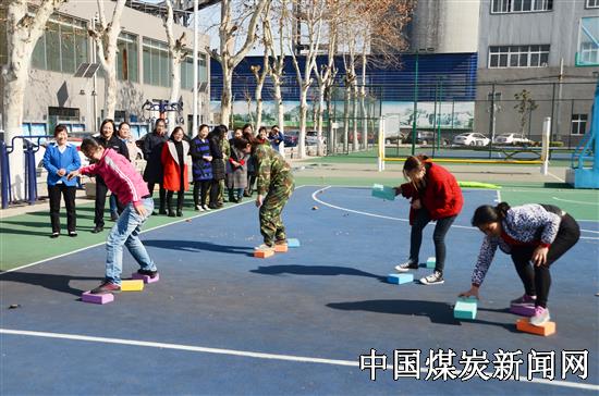 【本网讯】“三八”国际妇女节来临之际,山东能源淄矿集团许厂煤矿公司女工委组织多彩活动,共祝女职工节日快乐。图为趣味活动“跨越新时代”和“拓路”。