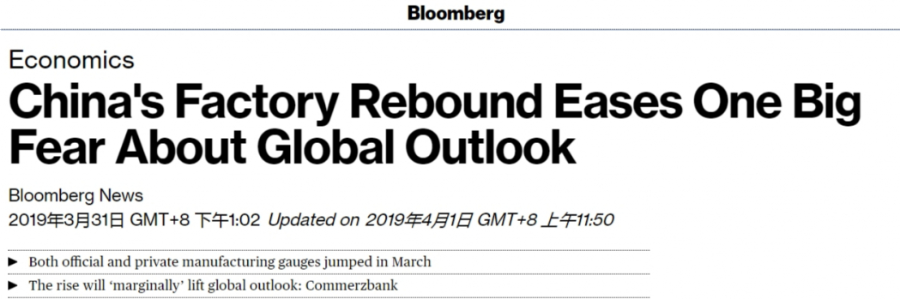 另据美国彭博社网站报道,中国3月份发布的首个官方经济指标显示,全球第二大经济体经济企稳,这缓解了对全球经济前景的担忧。