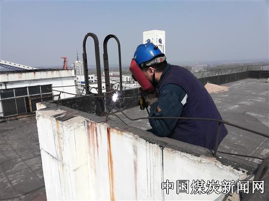 【本网讯】近期,随着雷雨天气临近,济三煤矿选煤中心结合上级关于夏季三防工作部署,坚持做到早动手早准备,开展避雷设施检查和维修工作,经过前期专业资质人员的检测,对洗选厂房避雷设施薄弱环节、出现过损坏的共计13处进行了有效的维修和整改,此项工作将如期进行,在4月底之前将所有原煤厂房、浅槽厂房、浮选和压滤厂房的避雷设施整改完毕,坚持做到发现问题及时整改落实,从而确保雷雨季节中心安全运行。图为职工正在对开裂的避雷设施进行维修