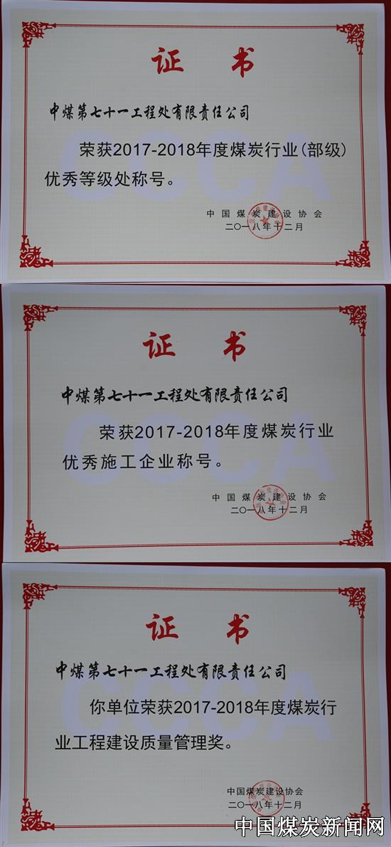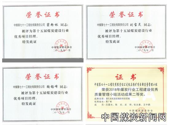 | 中煤七十一处荣获中国煤炭建设协会多项荣誉 | |||