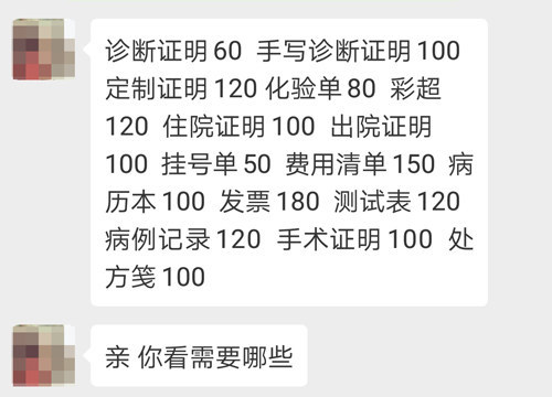 39深呼吸(ID:shenhuxi39)实际探访发现,找到做假病历的人并不难,做一份假病历成本也并不高,2000元就能做一份北京任意一家三甲医院的全套病历。 01 假病历骗众筹,2000块就能办全套 一份完整的病历包括门诊病历、住院志、体温单、医嘱单、化验单(检验报告)、医学影像检查资料、特殊检查同意书、手术同意书、手术及麻醉记录单、病理资料、护理记录等客观资料。 这样一份复杂的资料清单,如果是真的患者,只要付一个复印费或快递费就可以在医院病案室拿到。没有生病但需要假病历的呢?别担心,在做假病历的人那里是小事一桩,只要你肯给钱。 39深呼吸(ID:shenhuxi39)以“想办一份病历参加众筹”为由,通过微信联系到一个男卖家,他在语音回复中称,全套病历资料2000元,北京所有三甲医院都能做,病历资料中收费收据、检查单这些都有,随便什么肿瘤都可以,不过肿瘤的病程不能指定。